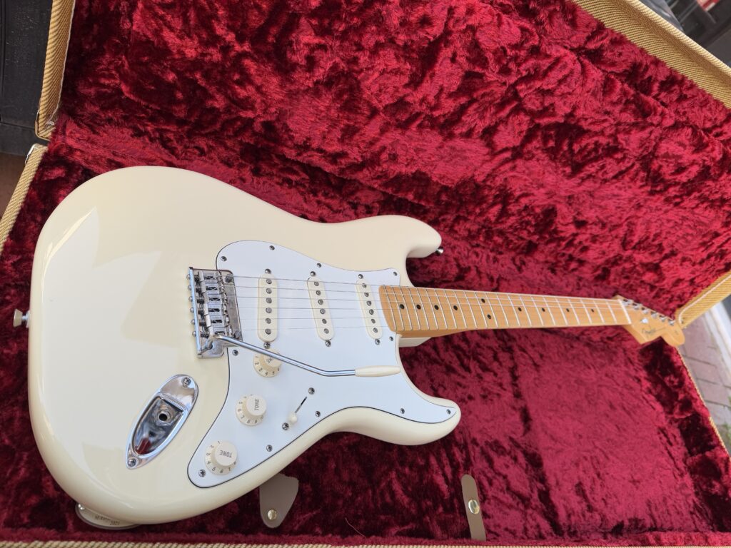 Fender American Standard Stratocaster 2012 Olympic White Çok temiz durumda. O yıllarda fabrika çıkışı olarak Fender Custom Shop Fat ’50s Single-Coil Strat seti ile geliyordu. Fotoğraflardaki gibidir.
