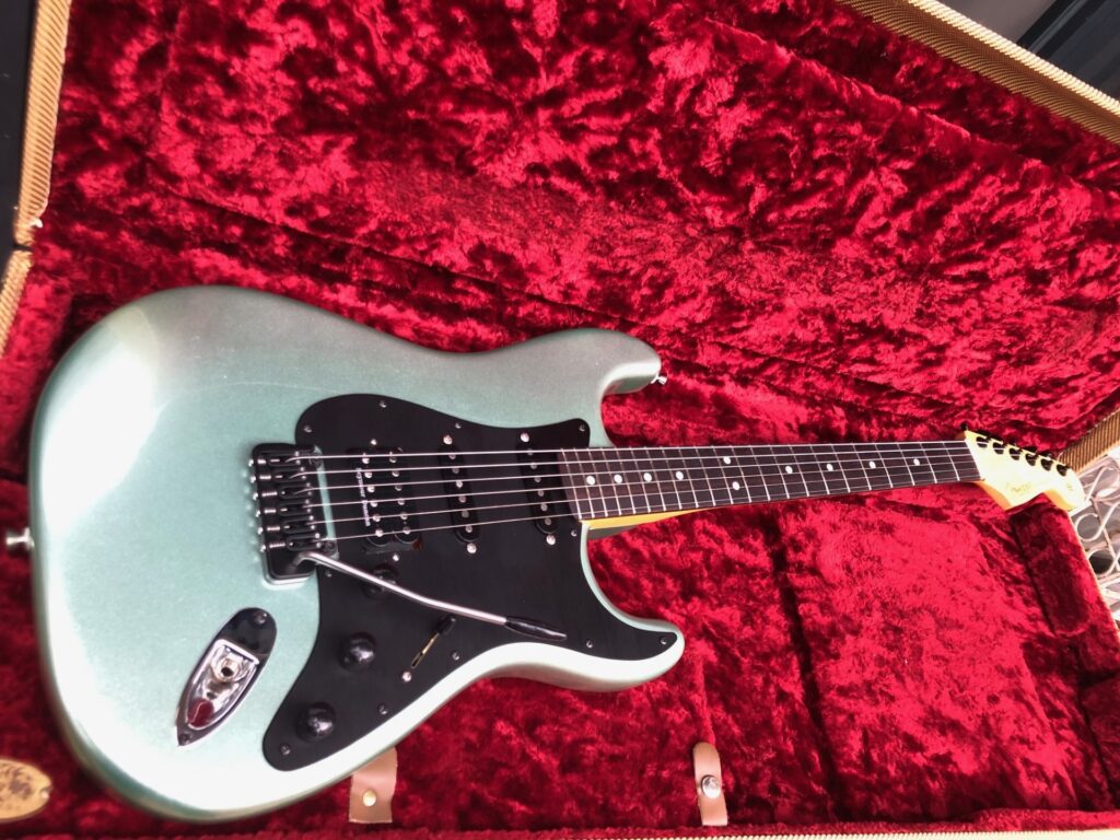 Fender American Professional II Stratocaster Mystic Surf Green Gitarda bir takım modifiyeler mevcut. Değişen tüm parçalar şu şekilde. Hipshot kilitli akort burguları. Hipshot köprü. Köprü manyetiği Seymour Duncan SH6 Distortion. Black Anodized Aluminum Pickguard. Diğer tüm parçalar orijinaldir.